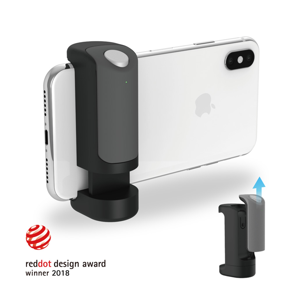 Just Mobile ShutterGrip™ -laitteen avulla älypuhelimestasi tulee välittömästi ammattimainen kameratyökalu. Tiukan otteen ansiosta se kiinnittyy lähes kaikkiin älypuhelimiin — riippumatta siitä, käytätkö kuorta vai et — ja tarjoaa tukevan, ergonomisen kahvan sekä langattoman laukaisimen. Tärisevät kuvat ja kömpelö kuvaaminen ovat menneisyyttä.