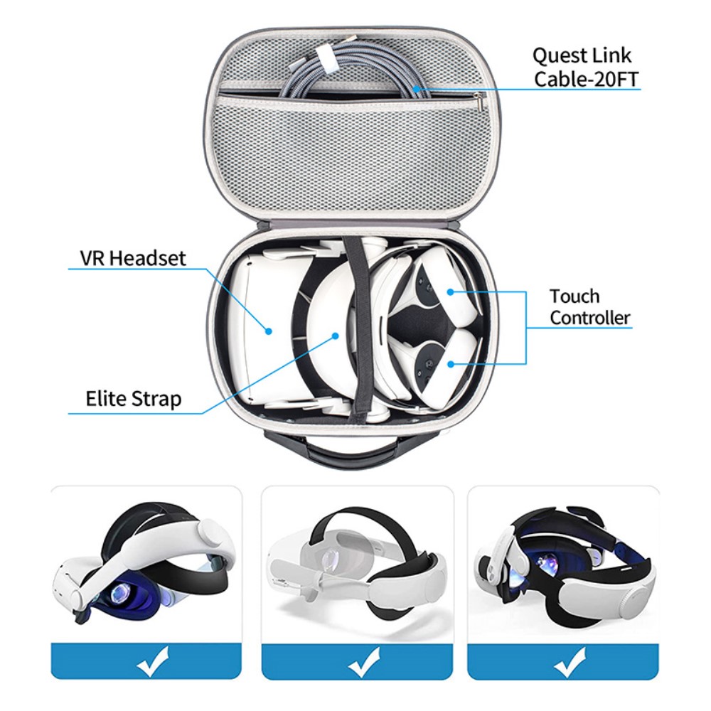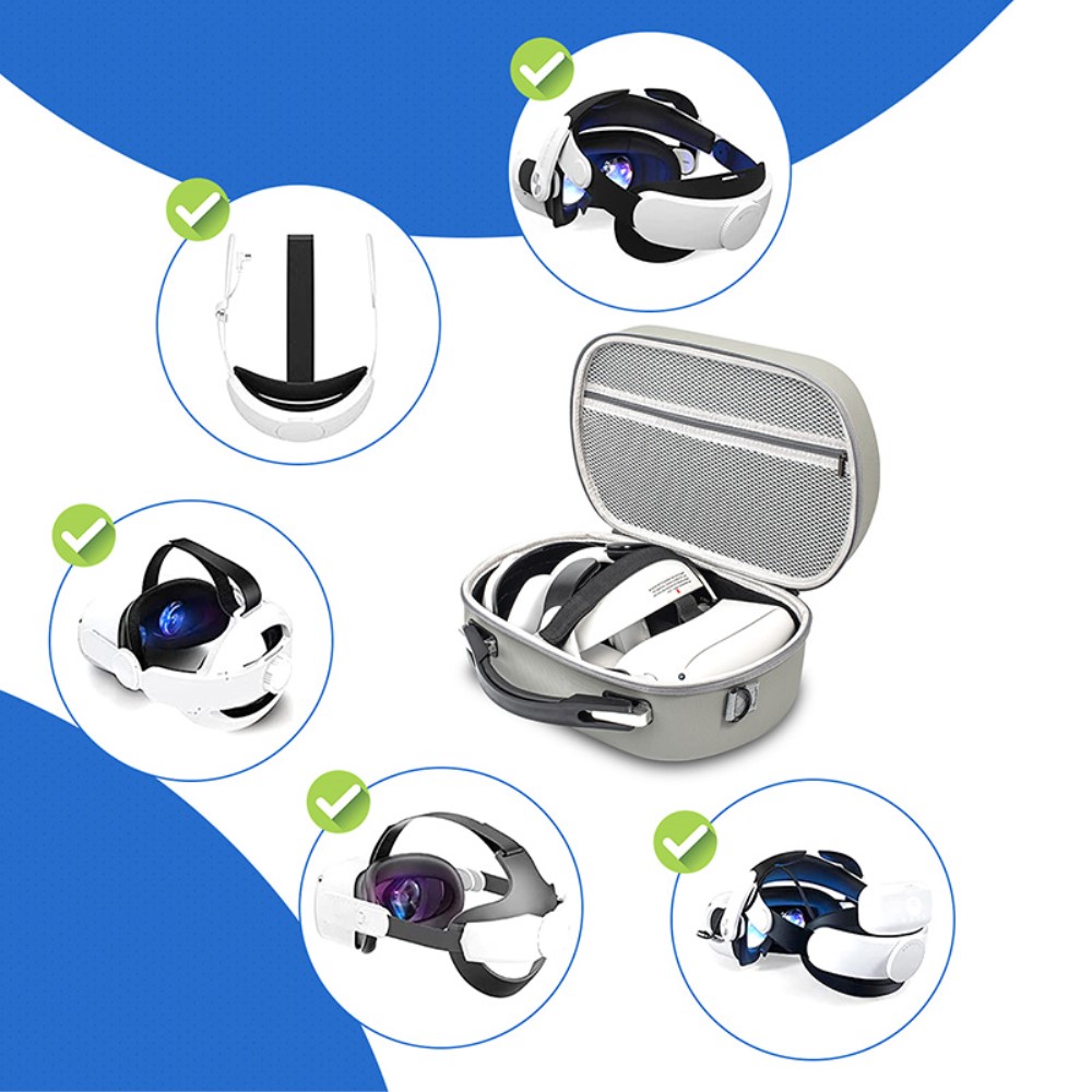 - Suunniteltu säilyttämään VR-kuulokkeet, sovittimet, latauskaapeli jne.
