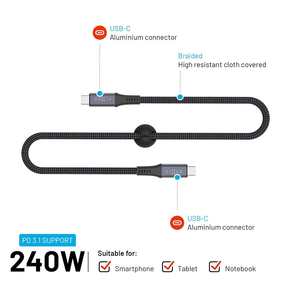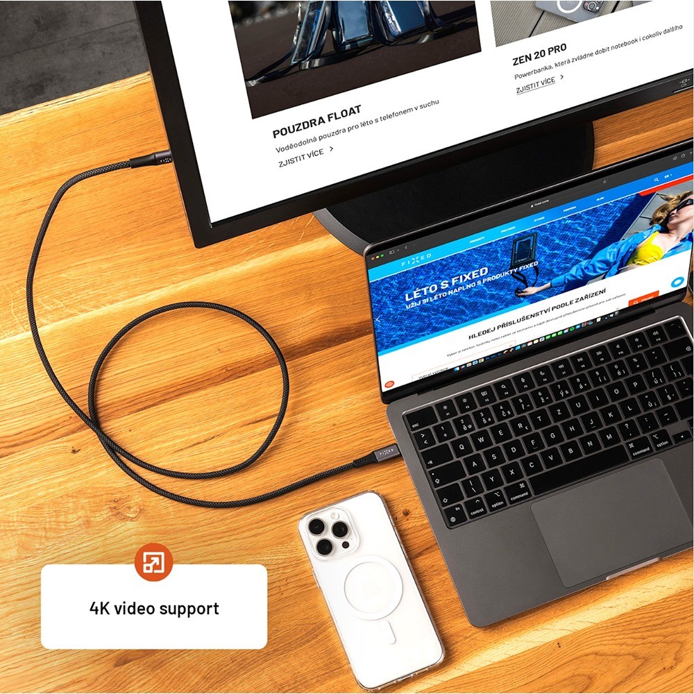 FIXED-multimediakaapeli on rakennettu sinulle, joka vaadit nopeaa tiedonsiirtoa, tehokasta latausta jopa 240 W:iin saakka ja 4K-videontoistoa – kaikki yhdessä ja samassa kaapelissa. Koska molemmissa päissä on USB-C-liittimet, voit helposti peilata tai suoratoistaa 4K-resoluution videota 60 Hz:n taajuudella puhelimestasi, tabletistasi tai MacBookistasi mille tahansa näytölle tai televisiolle, jossa on USB-C-tulo. Missä ikinä oletkin, saat huippuluokan kuvanlaadun.
