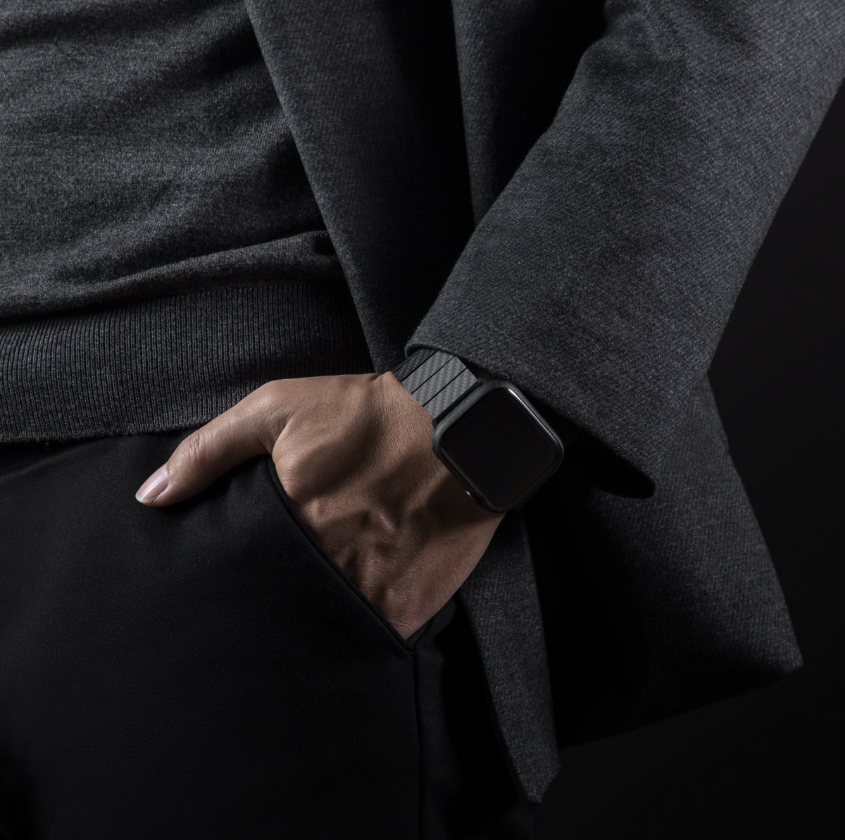 Pitaka Apple Watch Armband Carbon Fiber Watch Band Modern on musta ja harmaa ranneke Apple Watch 44 mm:lle, Apple Watch 45 mm:lle, Apple Watch Ultra 49 mm:lle ja Apple Watch 46 mm:lle.