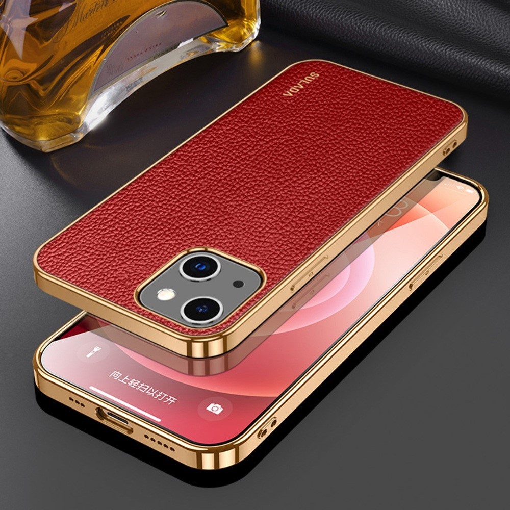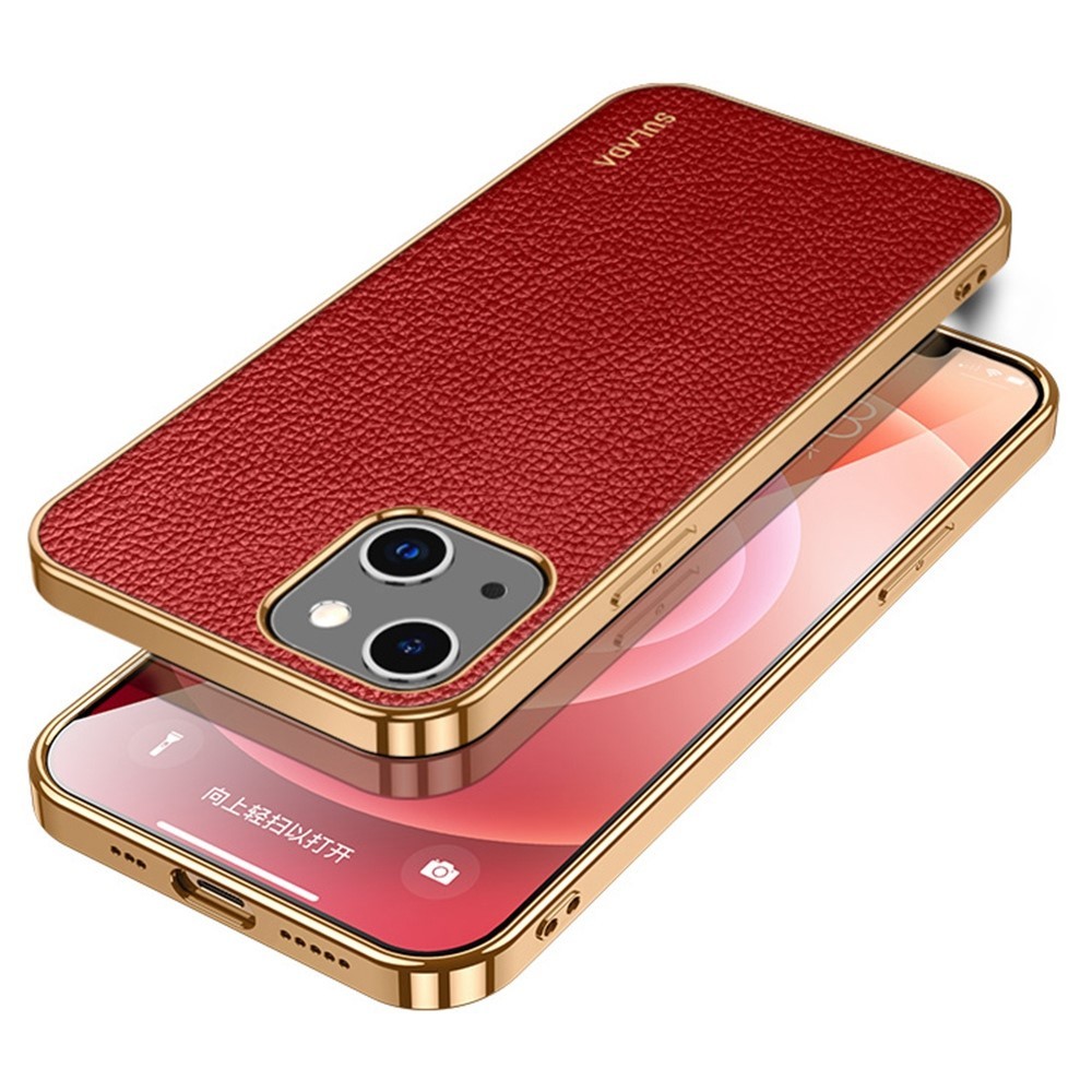 Sulada iPhone 14 Plus Kuori Litchikuvio Pinnoitettu reuna Punainen