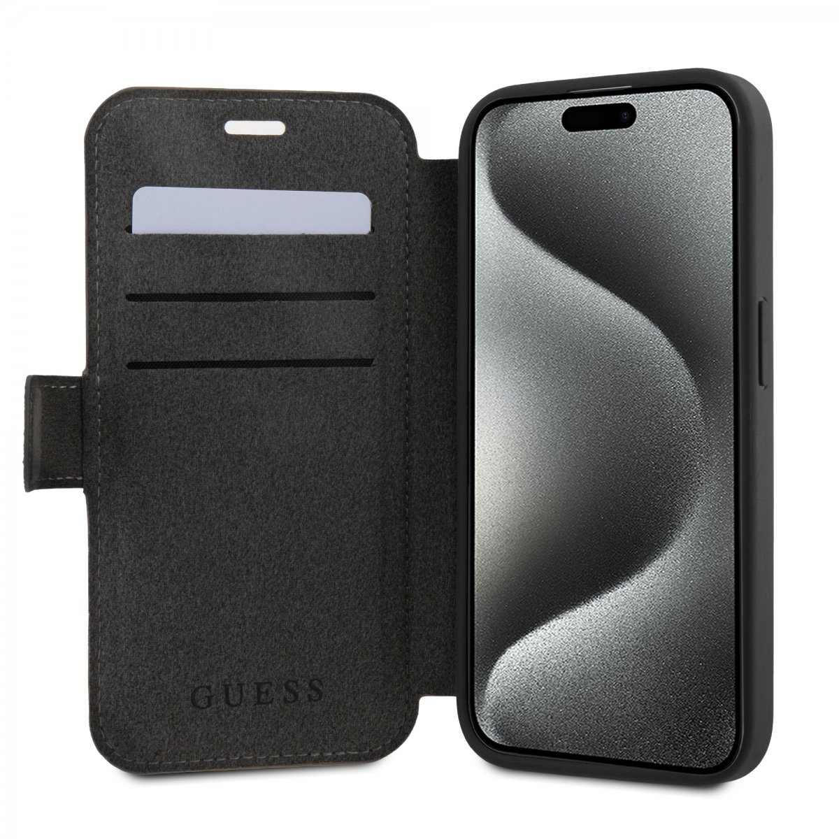 Guess iPhone 15 Pro Kotelo 4G Logo Harmaa