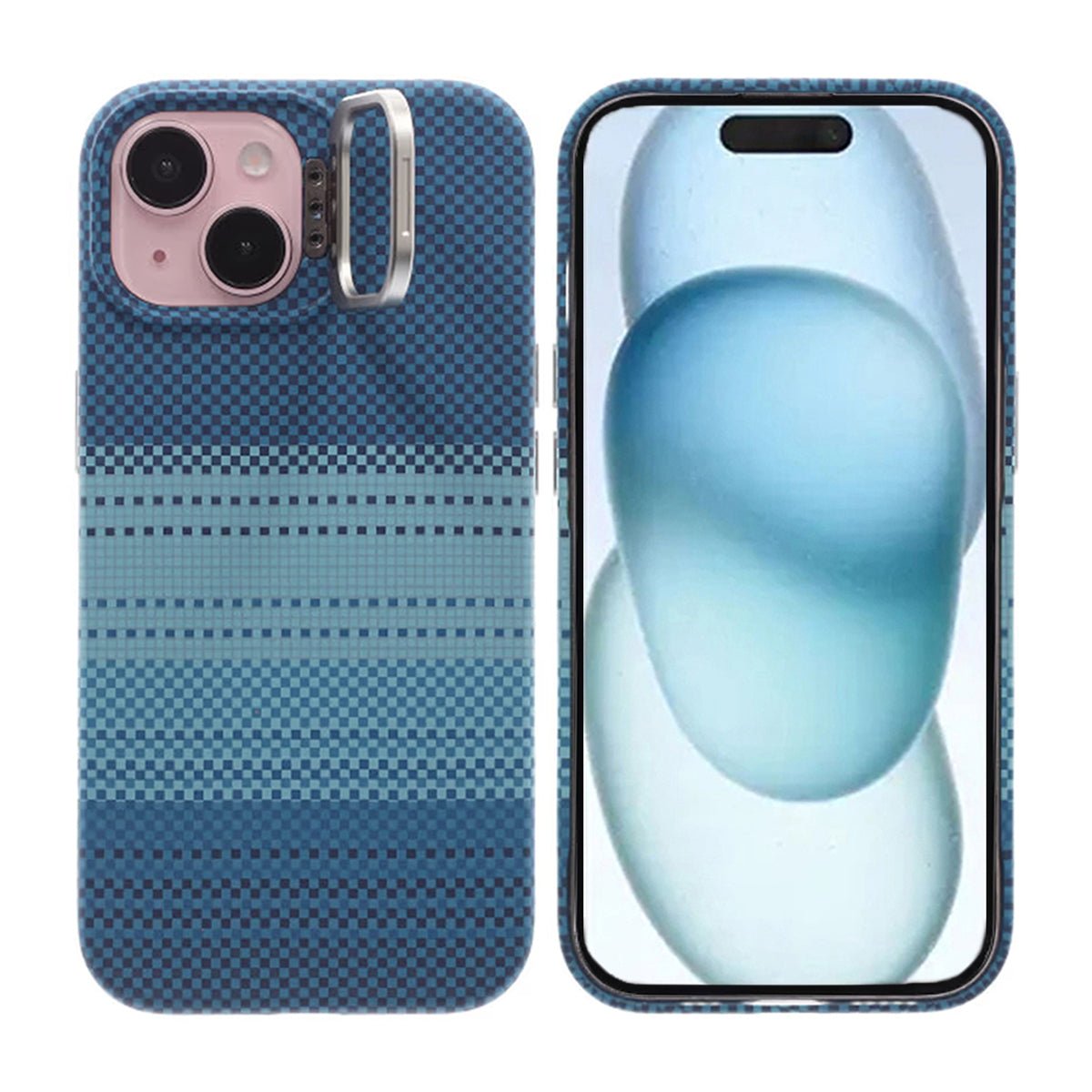 Sinisen sävyn yhdistelmä muiden sinisten yksityiskohtien kanssa luo tämän mobiilikotelon, joka luo ylellisen vaikutelman, joka korostaa puhelimen eleganssia.