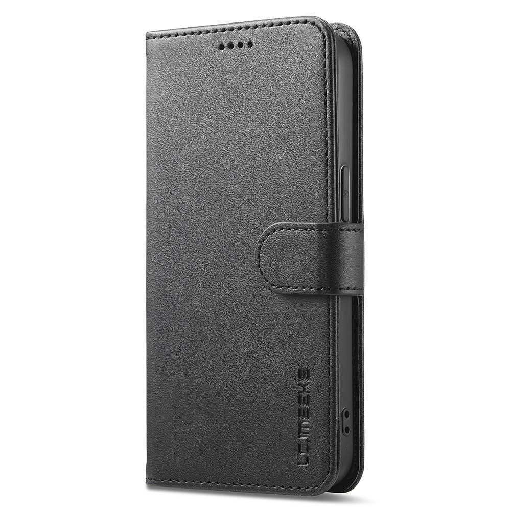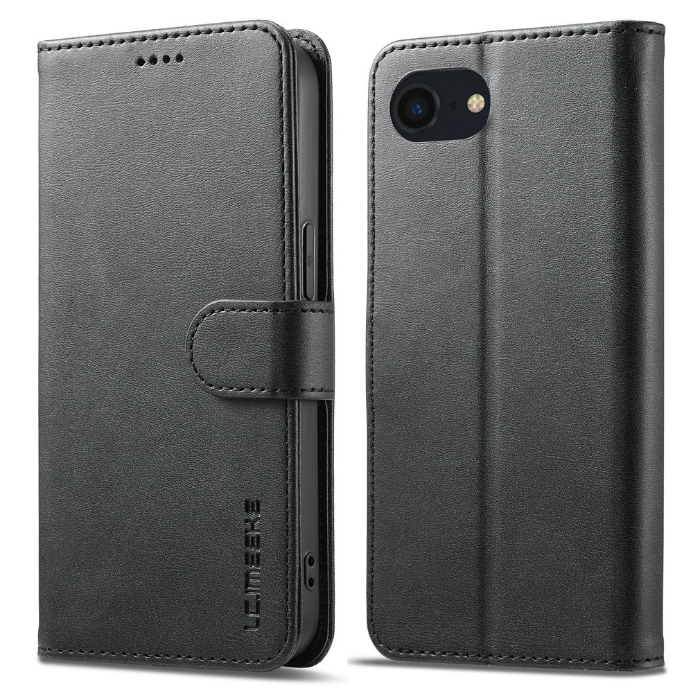 LC.IMEEKE iPhone 16e/17e -kotelo korttitaskulla ja jalustotoiminnolla on musta puhelinkotelo iPhone 16e/17e:lle.