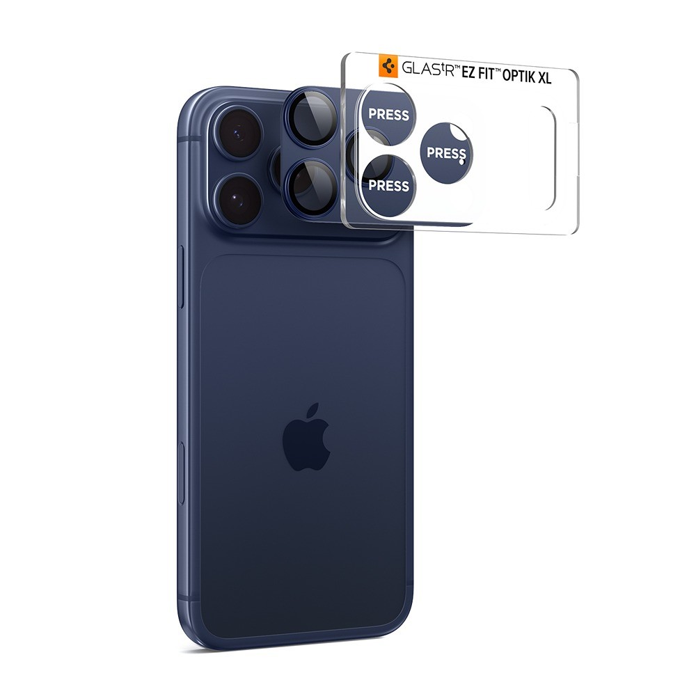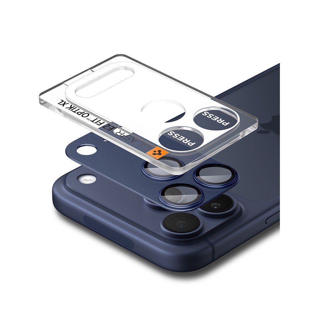 Spigen iPhone 17 Pro Max Kameraskydd Glas.tR EZ Fit Optik Pro XL Blå on sininen kameransuoja Apple iPhone 17 Pro Maxille.