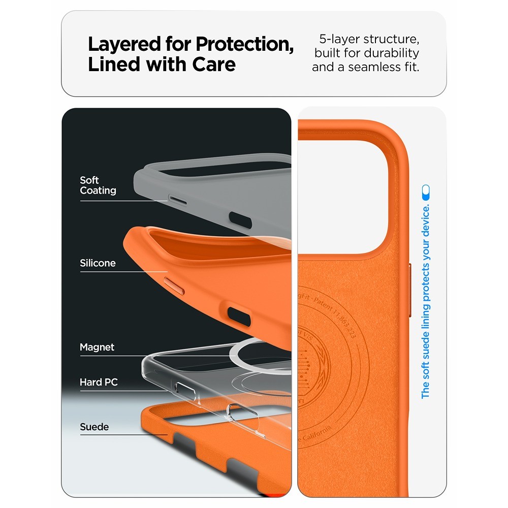 Spigen iPhone 17 Pro Max Skal Silicone Fit MagFit Cosmic Orange on oranssi suojakuori Apple iPhone 17 Pro Maxille.