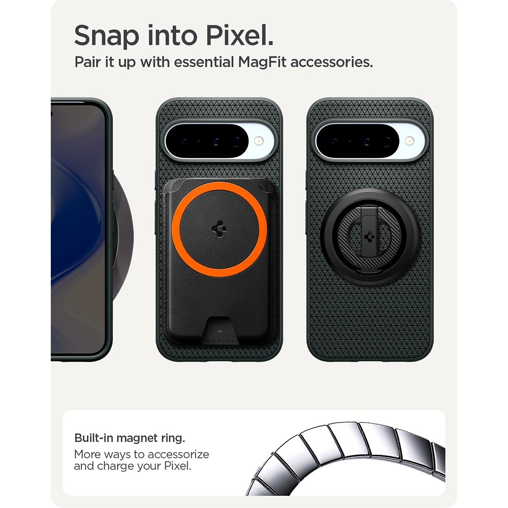Spigen Google Pixel 10/Pixel 10 Pro Skal Liquid Air MagFit Abyss Green on vihreä mobiilikuori Google Pixel 10:lle ja Google Pixel 10 Prolle.