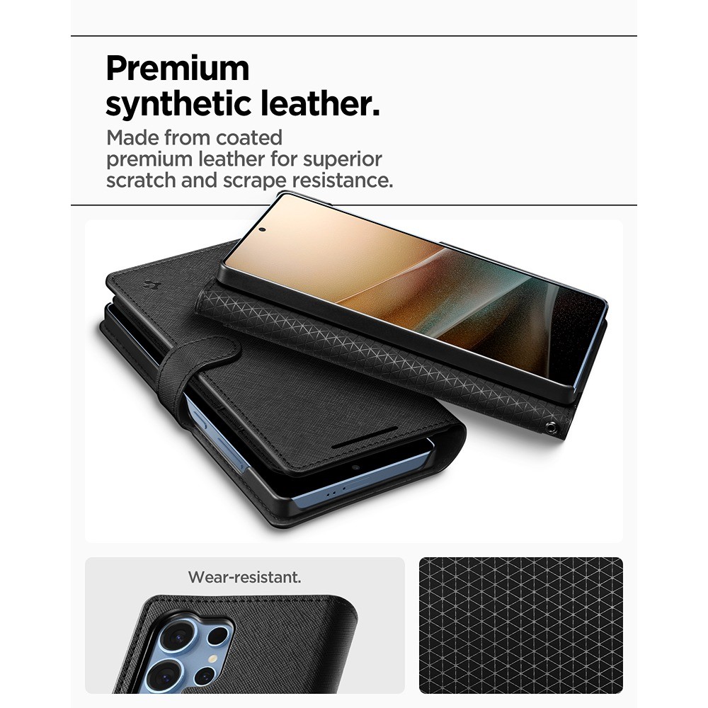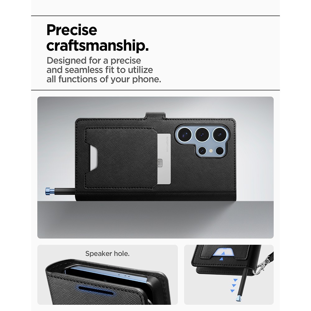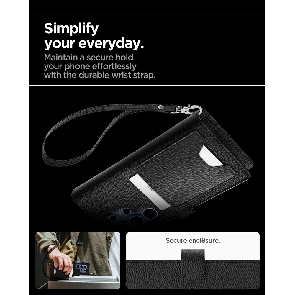 Spigen Samsung Galaxy S25 Ultra -kotelo Wallet S musta on musta suojakuori Samsung Galaxy S25 Ultra -puhelimelle.