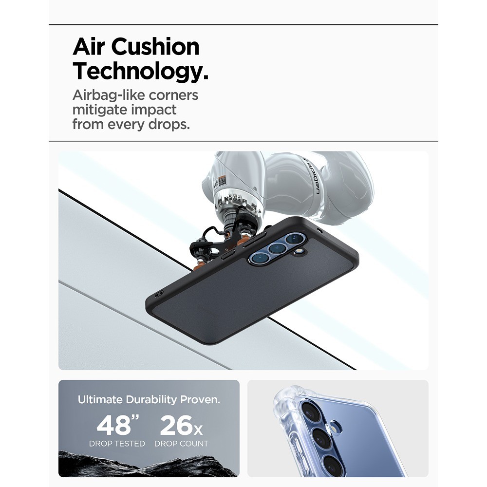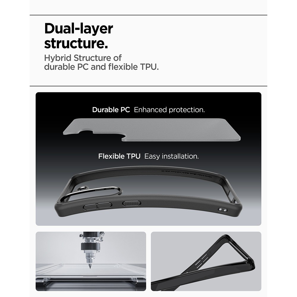 Suojakuori on hybridirakenteinen, siinä on iskunvaimentava puskuri ja huurrettu takapinta, joka on suunniteltu säilyttämään selkeytensä ajan kuluessa. Siro muotoilu saa puhelimen tuntumaan yhä kätevältä kädessä.