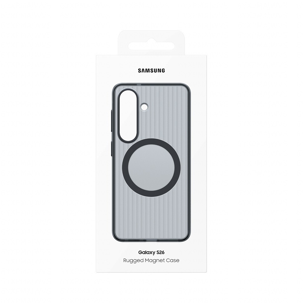 Samsung Original Galaxy S26 Skal Rugged Magnet Case Svart on musta ja läpikuultava suojakuori Samsung Galaxy S26:lle.