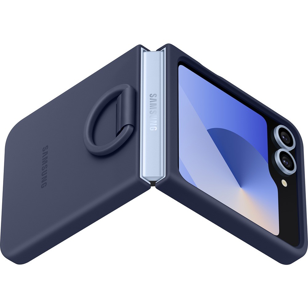 Samsung Original Galaxy Z Flip 6/Flip 7 FE Skal Silicone Case Navy on sininen suojakuori Samsung Galaxy Z Flip 6:lle ja Samsung Galaxy Z Flip 7 FE:lle.
