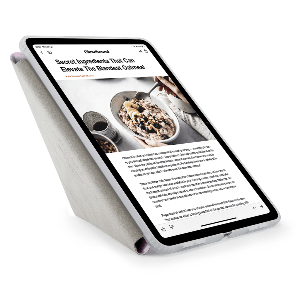 Suunniteltu päivittäiseen käyttöön, sisältäen iskunsuojauksen reunoilla ja taitettavan origami-muotoilun, joka tarjoaa useita telineasentoja. Magneettisuljennalla etuosa pysyy paikallaan, kun kotelo on suljettu.
