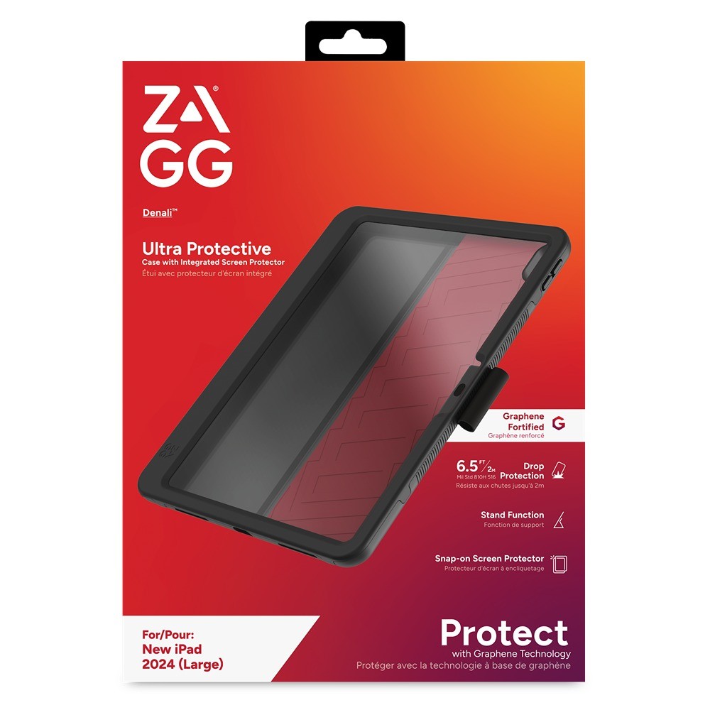 ZAGG iPad Air 13 (M2/M3) -kuori näytönsuojalla Denali Musta on musta näytönsuoja iPad Air 13 (M2/M3):lle.