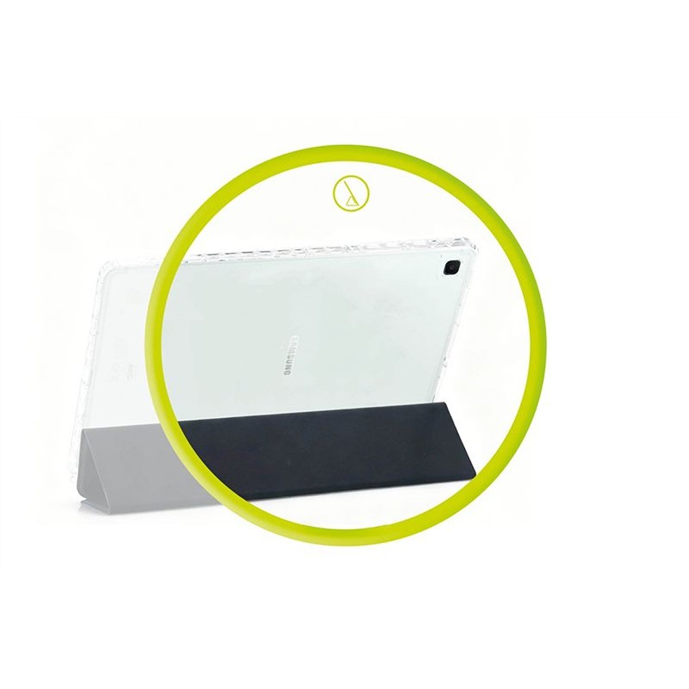 Suojaava kotelo peittää näytön, takapinnan ja kulmat, ja se suljetaan magneeteilla, jotka pitävät etukannen paikoillaan, kun kannat tablettia.