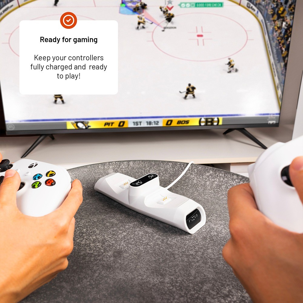 Sinulle, joka otat pelaamisen vakavasti, FIXED-lataustelakka kahdelle Xbox-ohjaimelle on lisävaruste, jota et halua olla ilman. Telakka hoitaa kahden ohjaimen samanaikaisen latauksen ja toimii Xbox ONE-, Xbox Series X/S- sekä Elite-sarjan kanssa.