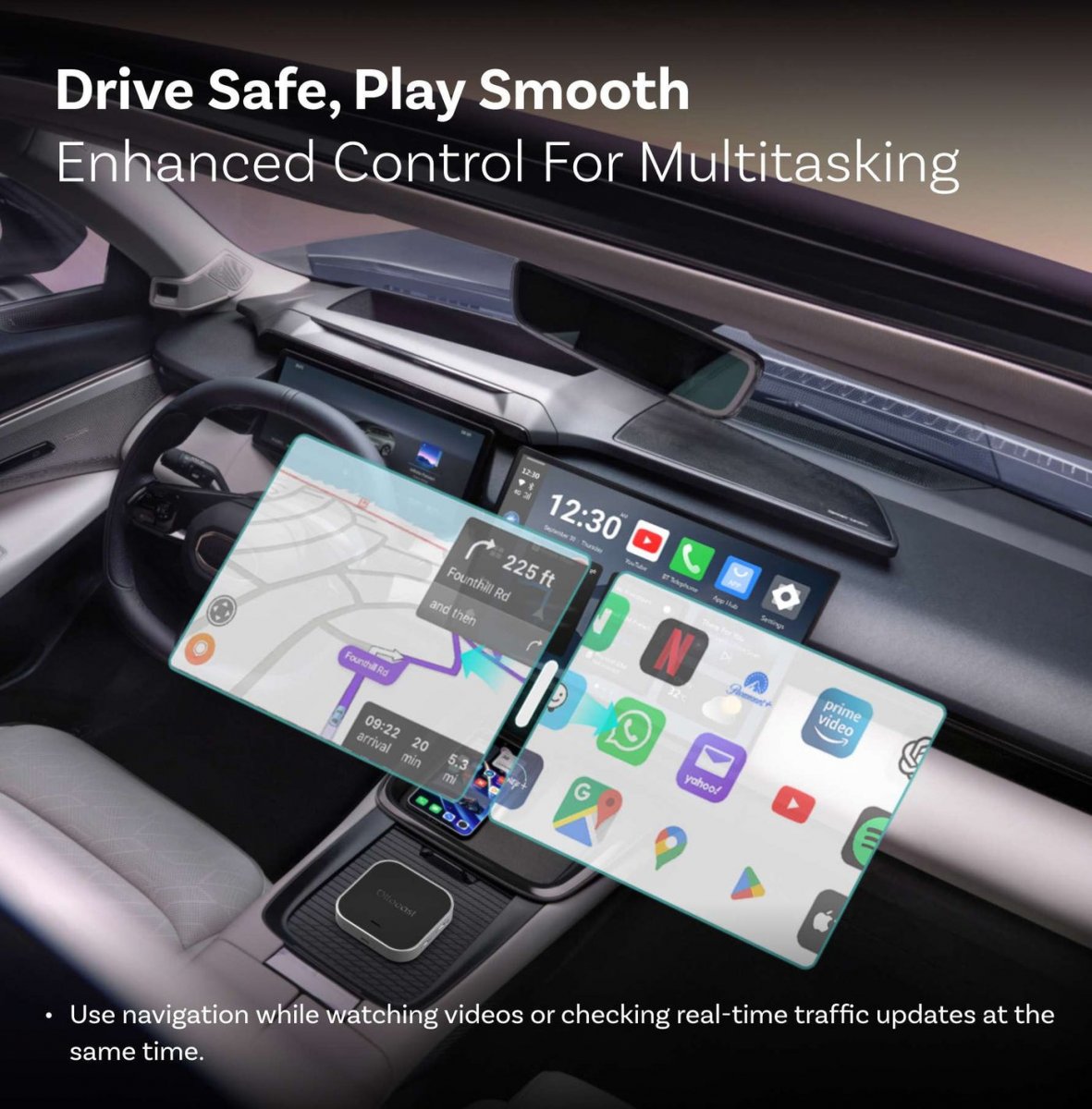 Tuetut järjestelmät: Apple CarPlay (wireless), Android Auto (wireless)