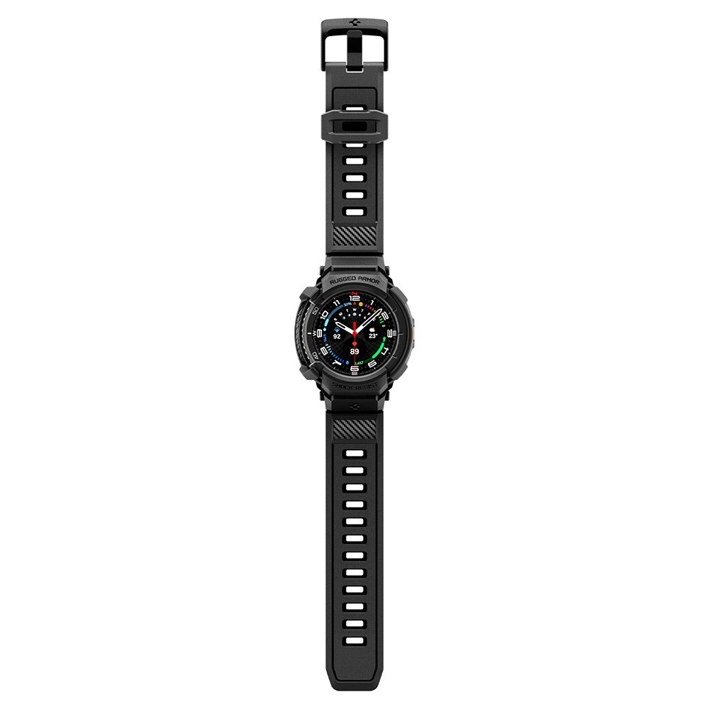 Spigen Samsung Galaxy Watch 8 Classic 46mm ranneke ja kuori Rugged Armor Pro Matte Black on musta suojakuori Samsung Galaxy Watch 8 Classic 46mm:lle.