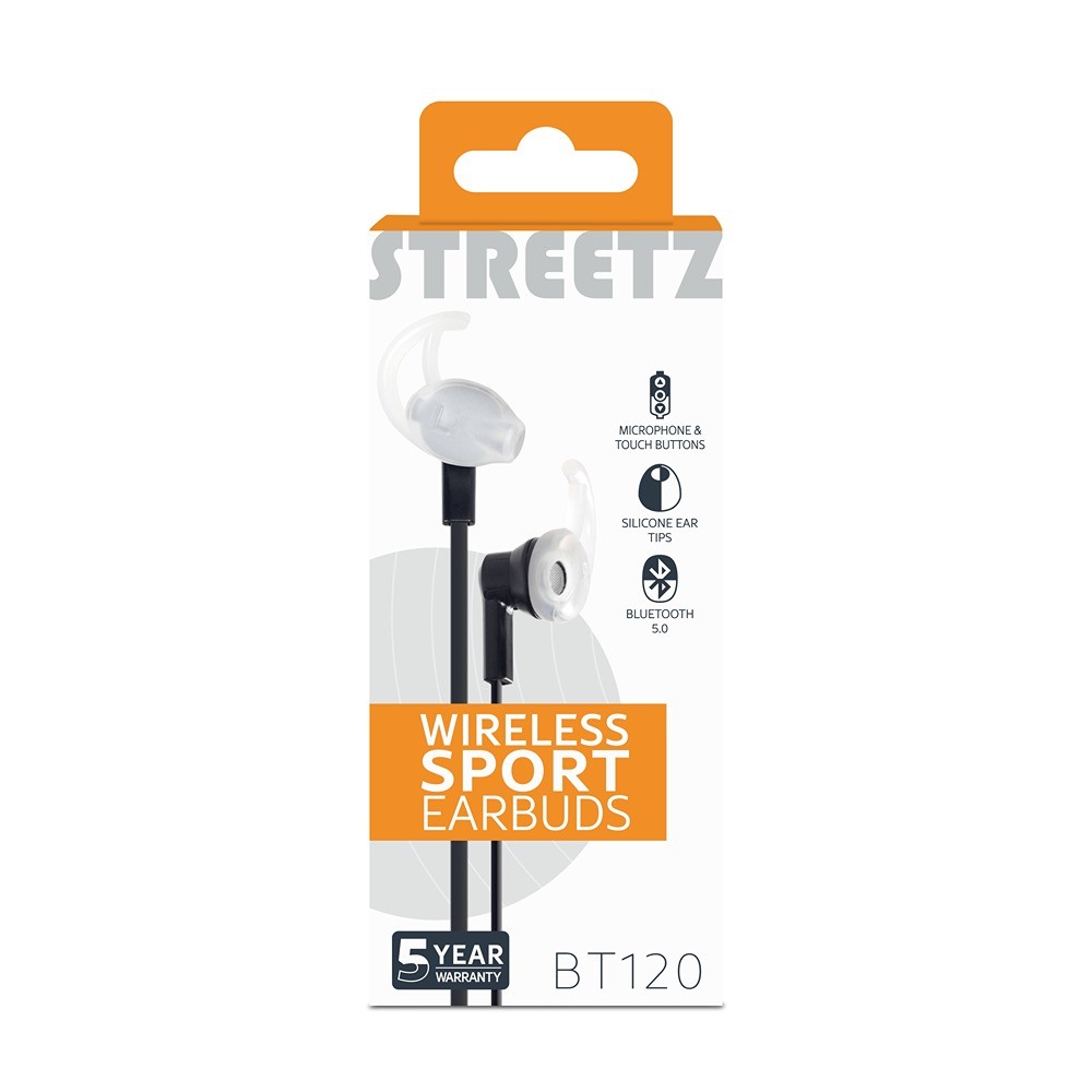 Langattomat Bluetooth 5 -kuulokkeet STREETZilta, joilla on korkea äänenlaatu, suunniteltu pysymään korvissasi treenin ja muiden intensiivisten aktiviteettien aikana. Johdon pituus on 1,2 metriä ja siinä on mikrofoni sekä monipainike mukavaa puhelu- ja mediasisällön käsittelyä varten.