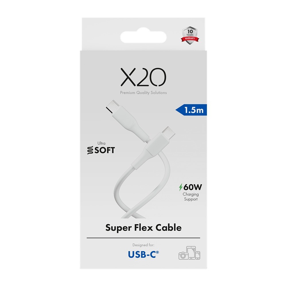 X2O Soft-Touch Silicone Series on USB-C–USB-C-kaapeli, jonka ulkokuori on pehmeää silikonia ja joka aktiivisesti estää sotkeutumista. Kaapeli noudattaa USB 2.0 -standardia ja yhdistää tukevan sisäisen johdotusrakenteen valettuihin liitinosiin ja nikkelöityihin liittimiin — mikä takaa sekä pitkän käyttöiän että helpon käsittelyn.